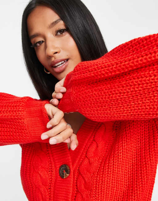 Threadbare Petite Clove cable knit cardigan in red ASOS Very well made.