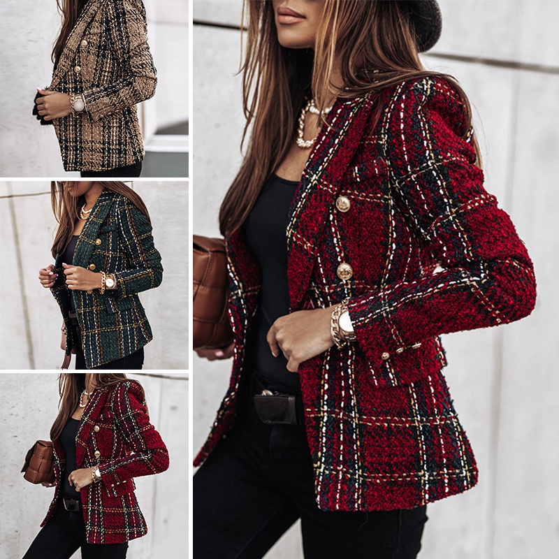 YZRDY Red Plaid Blazer Women Spring Autumn Vintage Tweed Suits Very well made.