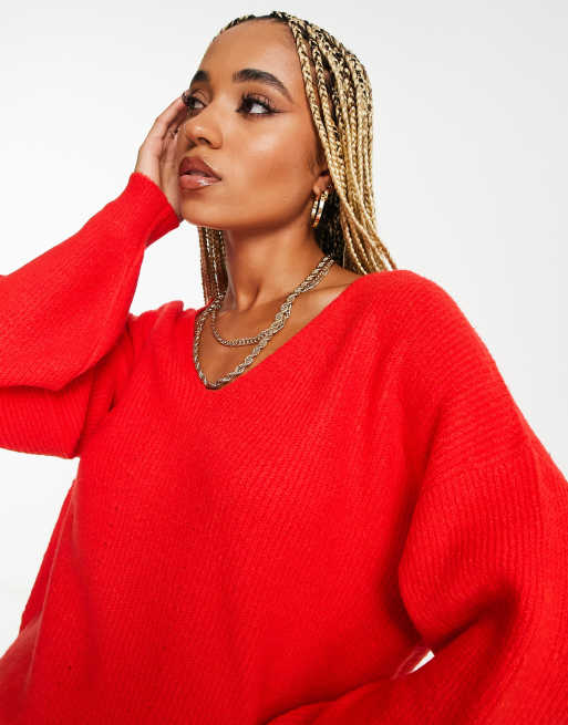 Threadbare Lily v neck slouch sweater in red Very well made.