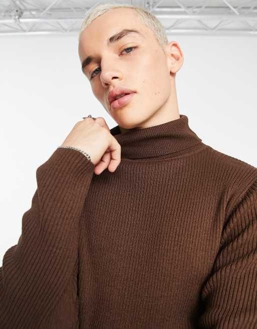 COLLUSION knitted ribbed roll neck jumper in chocolate brown Very well made.