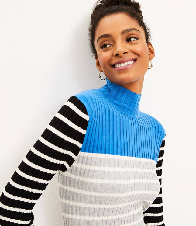 Petite Stripe Ribbed Turtleneck Sweater Very well made.