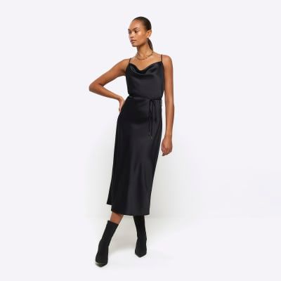 River Island Womens Black Satin Cowl Neck Slip Midi Dress 40.00 Very well made.