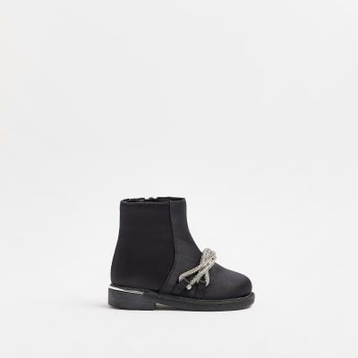 River Island Mini Girls Black Diamante Satin Ankle Boots 15.00 Very well made.