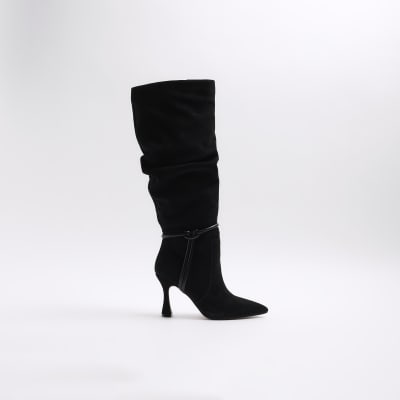 River Island size 6 black boots suede slouch mid heel Vinted Very well made.