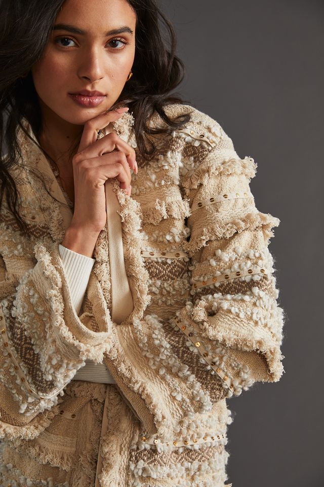 NVLT Fringe Tie Waist Knit Jacket Anthropologie Very well made.