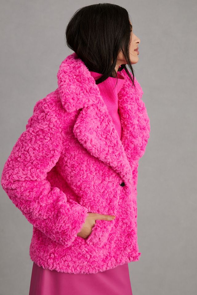 Solitaire Anthropologie Pink Faux Suede Floral Coat Butterfly Open Very well made.