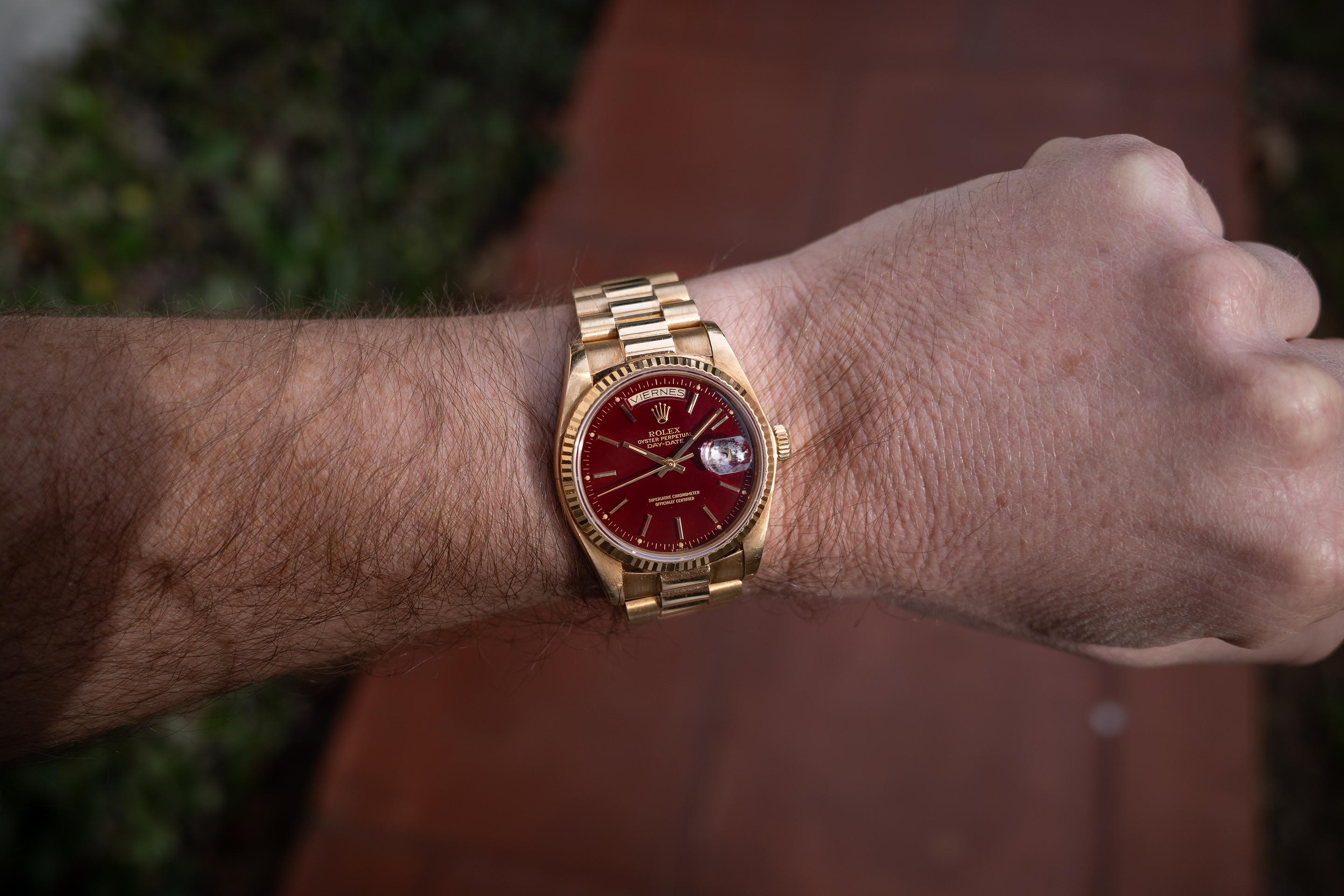 Tropical Watch 1983 Rolex 18K YG Day Date 18038 Oxblood Stella Dial Very well made.