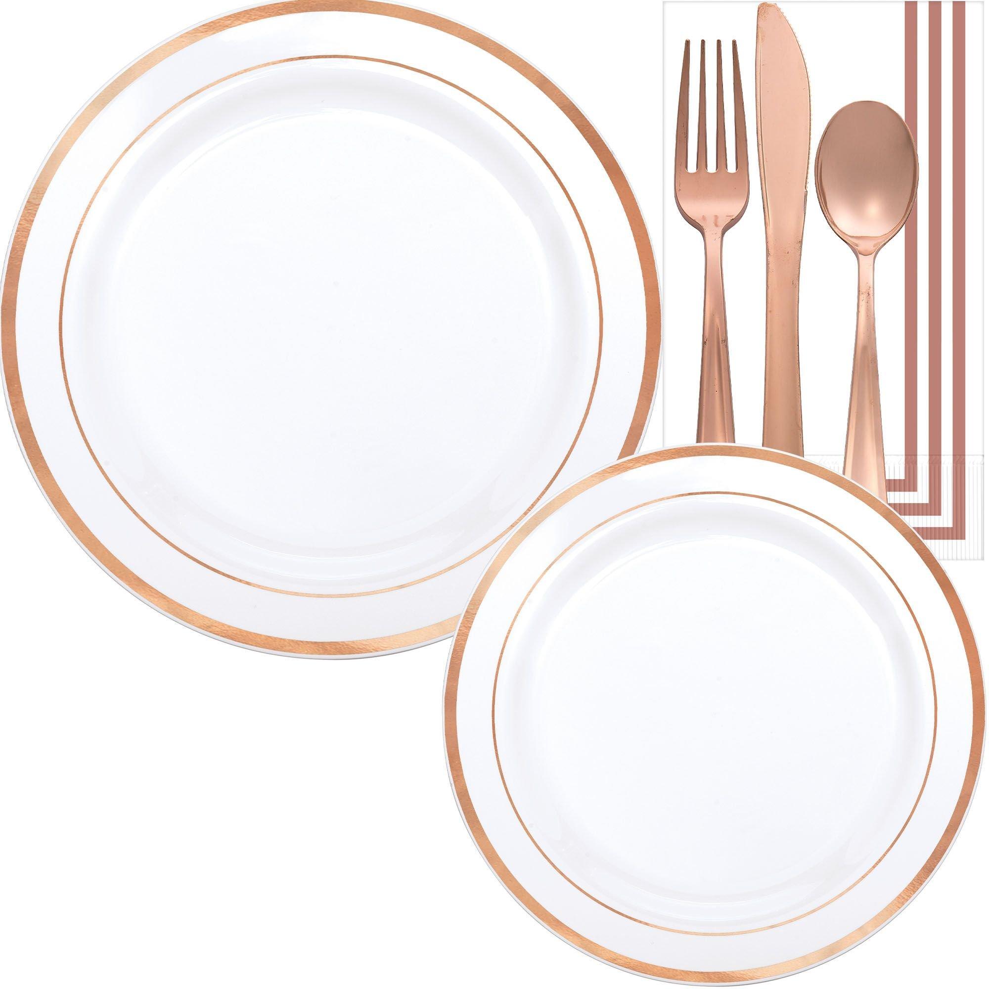 175 PCS Rose Gold Party Supplies Disposable Paper Dinnerware Set Very well made.