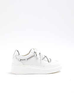 Faux Leather White Platform Trainers With Rose Gold Toe Size 5 Very well made.