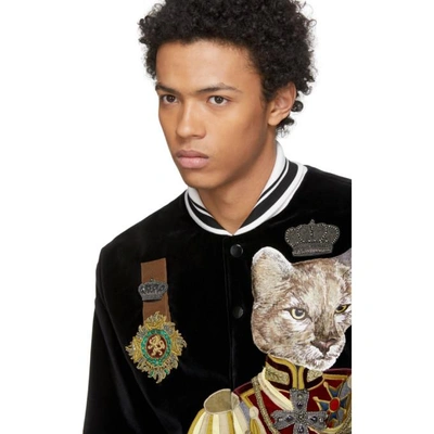 Dolce Gabbana Black Velvet Royal Cat Bomber Jacket ModeSens Very well made.