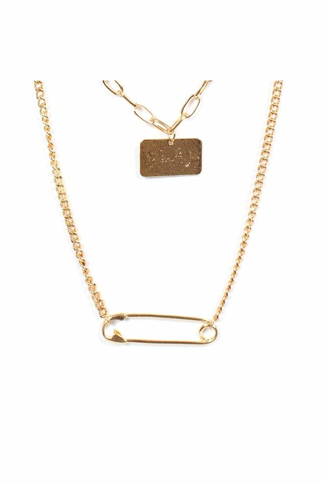 Womens Metallic Gold Bar And Safety Pin Pendant Statement Multilayered Western Necklace Very well made.