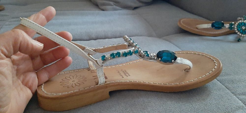 Sandali gioiello color bianchi con strass blu n.36 Comprare su Very well made.
