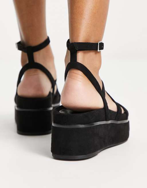 ASOS DESIGN Taurus Sandali neri con fascette sottili e suola flatform Very well made.