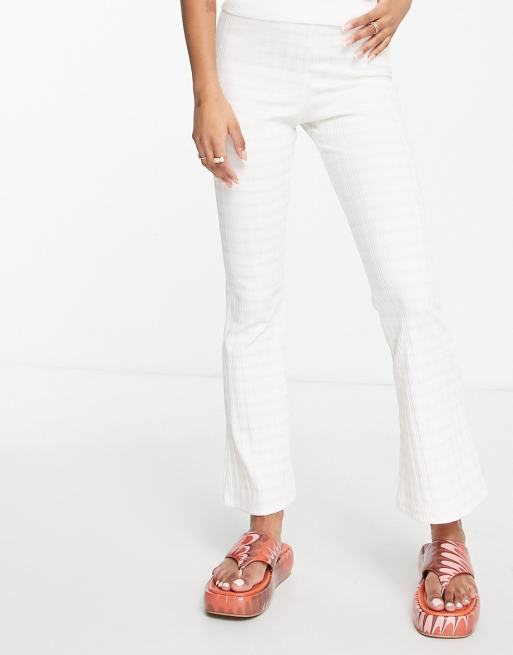 Topshop Petite co ord ribbed stripe flared trouser in ecru Very well made.
