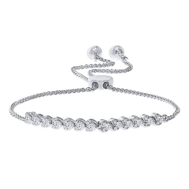 Sterling Silver 1 2 Carat T.W. Diamond Small Hearts Bolo Bracelet Very well made.