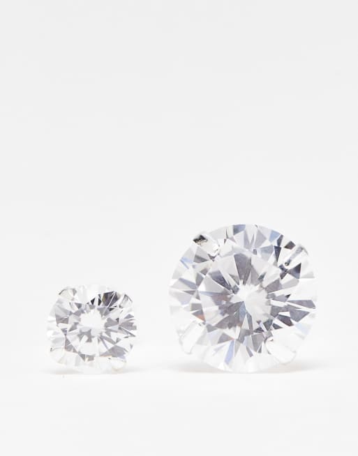 ASOS DESIGN 2 pack sterling silver stud earring set with crystal in silver Very well made.