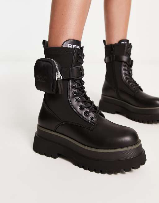 Replay Stivali stringati neri con suola spessa ASOS Very well made.
