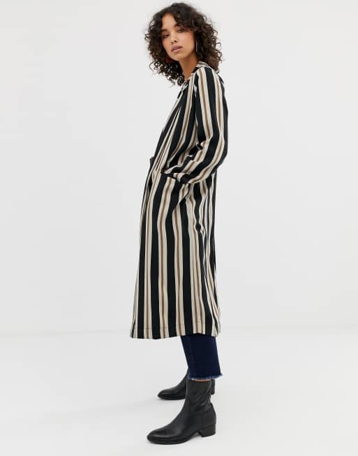 Women Italian Long Duster Jacket Ladies Ribbed Cuff Sports Stripe Very well made.