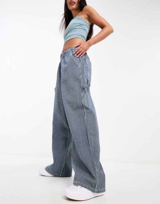 ASOS DESIGN wide leg trousers with pleats in navy pin stripe Very well made.