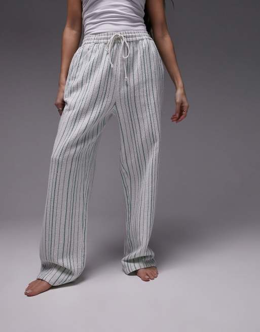 Topshop pull on towelling stripe wide leg trouser in white Very well made.
