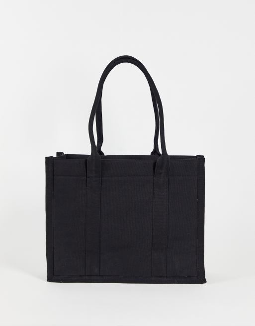 ASOS DESIGN structured tote bag in heavyweight black canvas with internal wallet Very well made.