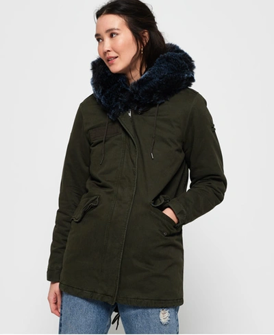 Superdry Hawk Coloured Faux Fur Parka Jacket In Khaki ModeSens Very well made.