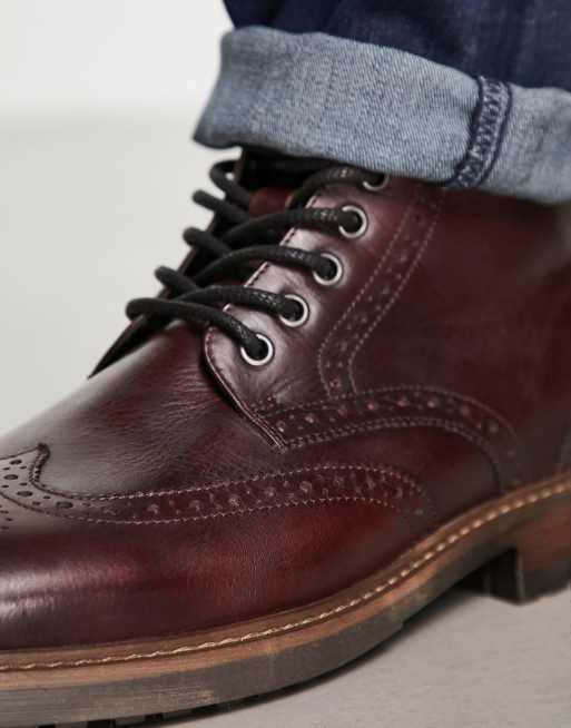 Red Tape wide fit lace up brogue boots in burgundy leather Very well made.