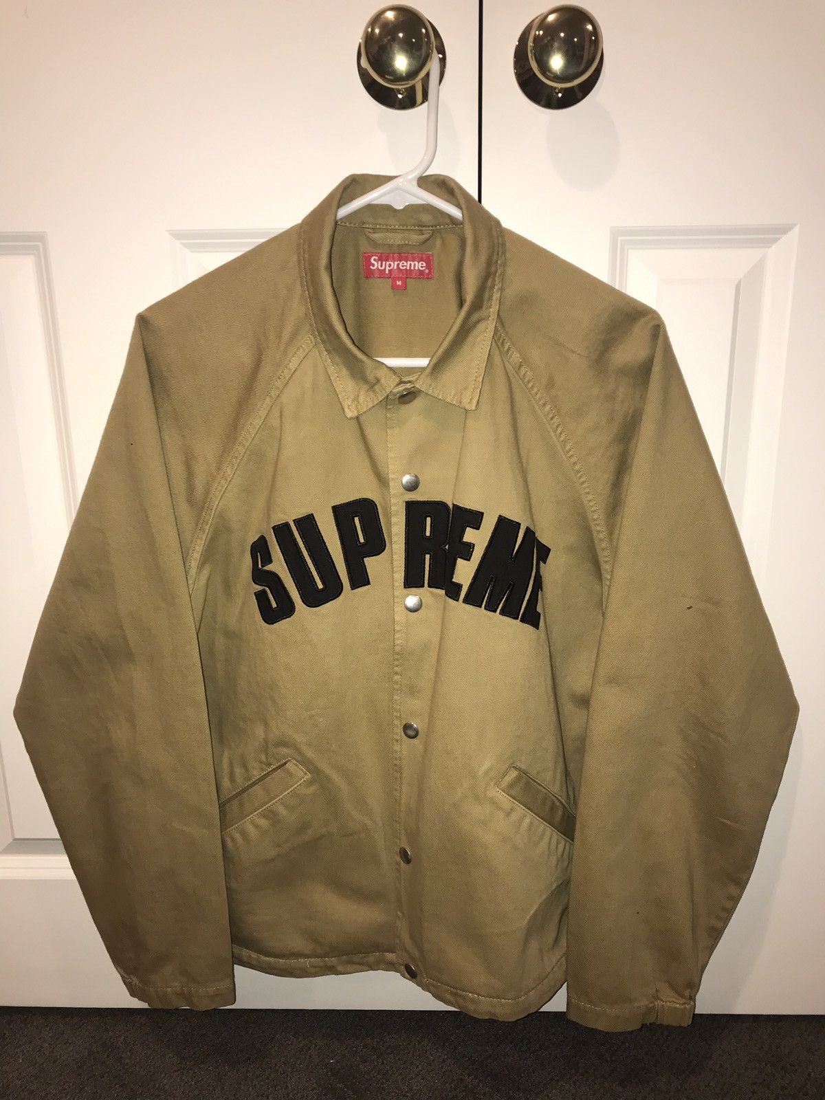 Supreme Snap Front Jacquard Logos Twill Jacket Tan Men s FW19 GB Very well made.
