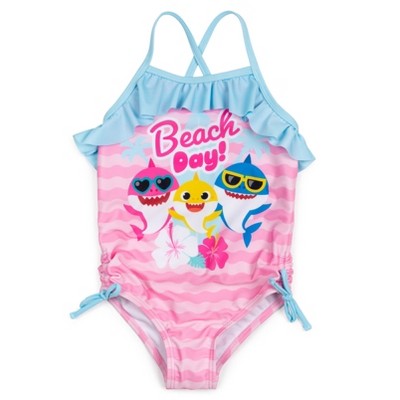 Baby Shark Daddy Mommy Toddler Girls One piece Bathing Suit Blue Very well made.