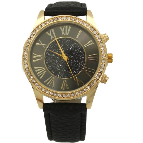 Black Glitter And Gold Detail Leather Strap Watch Target Very well made.