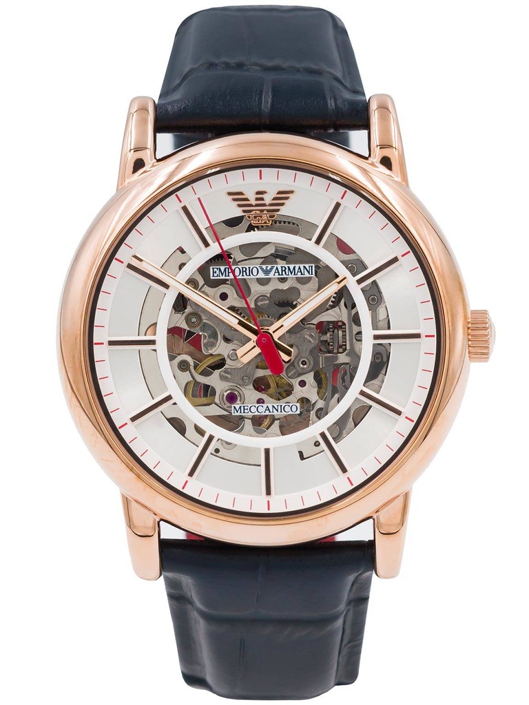 Emporio Armani Meccanico Silver Dial Blue Leather Strap Watch For Men Very well made.