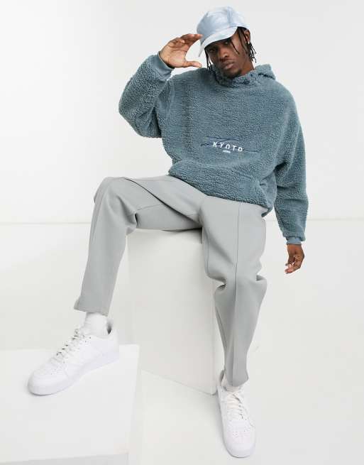 ASOS DESIGN oversized funnel neck hoodie in rusty metal gray teddy Very well made.
