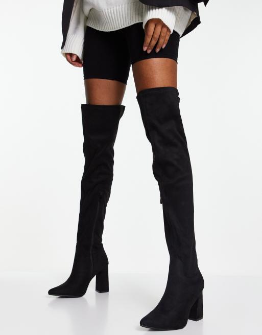 Truffle Collection Wide Fit thigh high heeled boots in black Very well made.