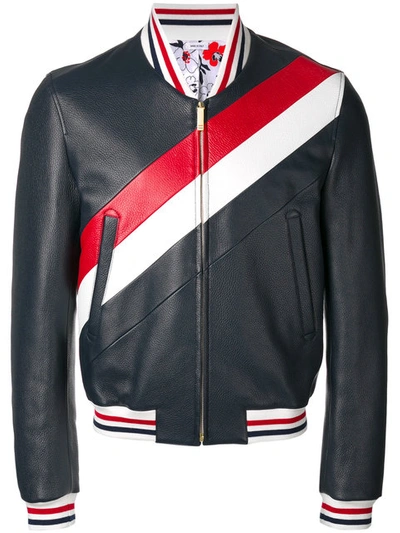 Thom Browne Striped Leather Bomber Jacket In Navy ModeSens Very well made.