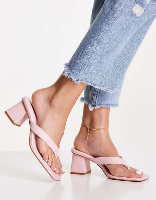 Stradivarius thong mule heeled sandal in pale pink Very well made.