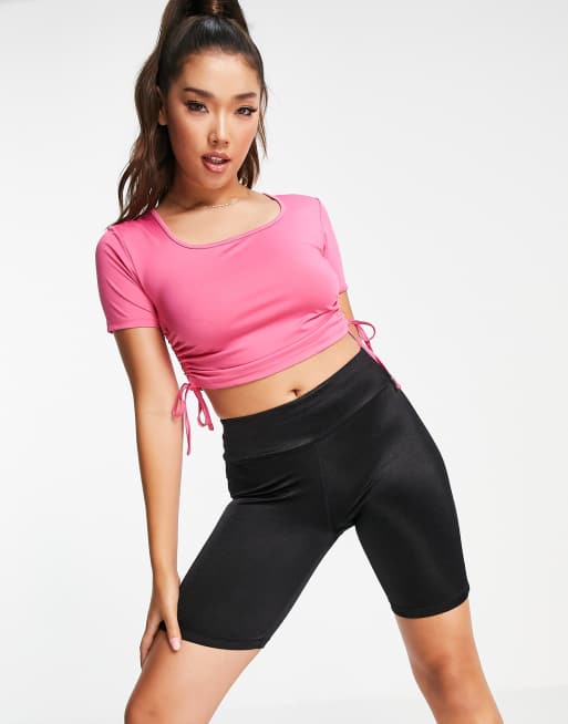 Threadbare Fitness tie side square neck gym crop top in hot pink Very well made.
