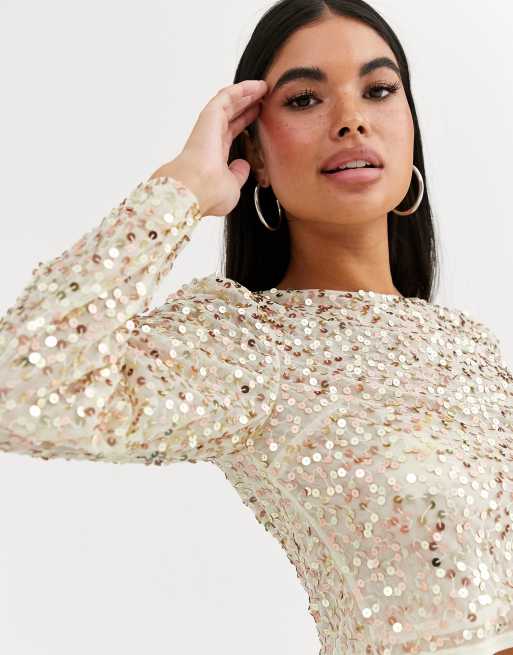 ASOS DESIGN Petite long sleeve top with sequin embellishment Very well made.