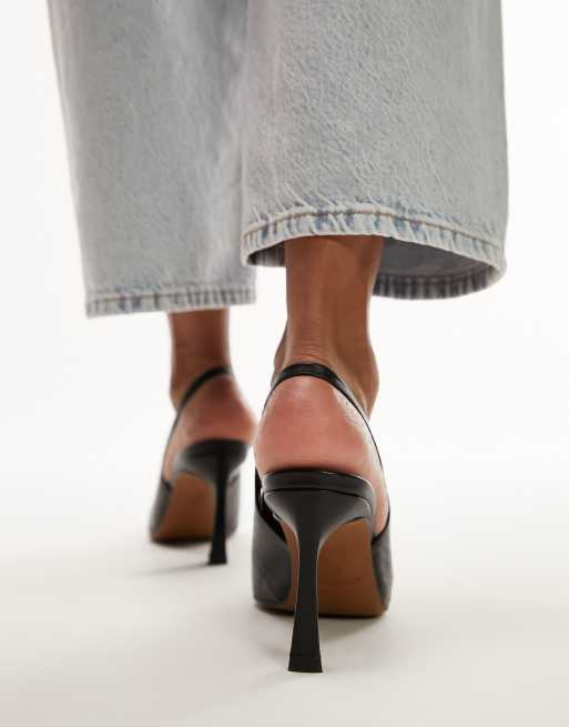 Topshop Coy premium leather sling back heeled court shoe in black Very well made.