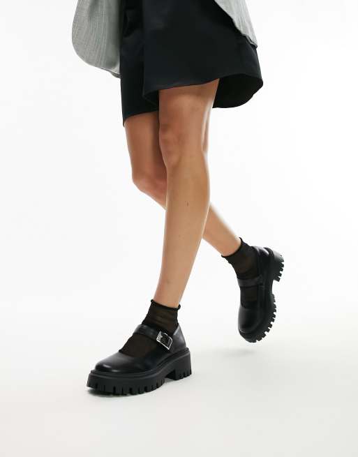 Topshop Wide Fit Amy chunky flat shoe with buckle in black Very well made.