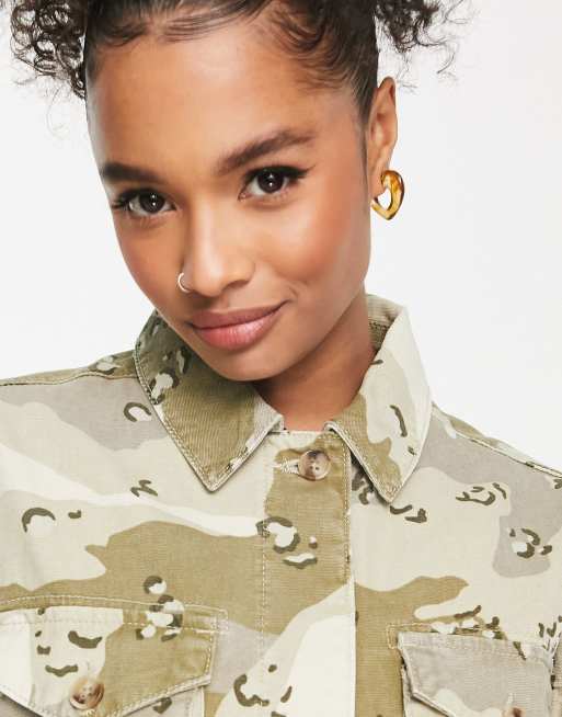 Topshop Petite oversized utility shirt jacket in khaki camo print Very well made.