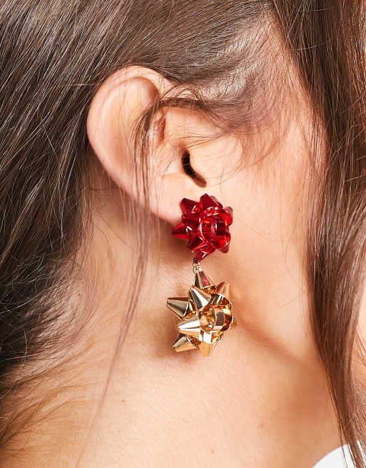 ASOS DESIGN Christmas drop earrings in bow design Very well made.