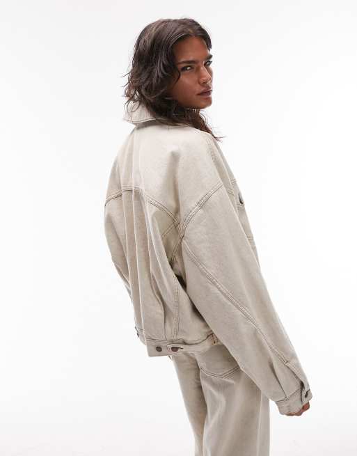 Topshop co ord denim balloon jacket with check lining in ecru Very well made.