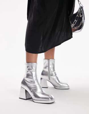 Topshop Tiff satin block heeled ankle boot in silver Compare Very well made.