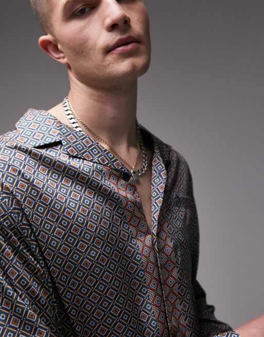 Topman short sleeve regular revere geo border satin printed shirt Very well made.