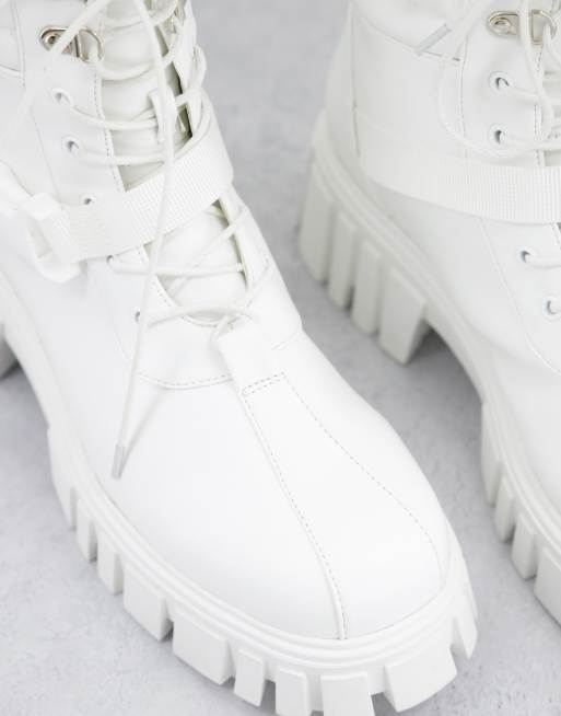 Public Desire Man Kash lace up buckle hiker boots in white Very well made.