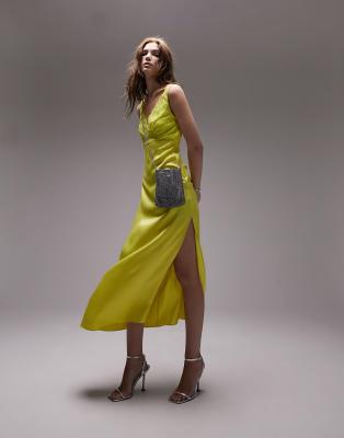 Topshop cami satin and lace midi dress in lime Green Very well made.
