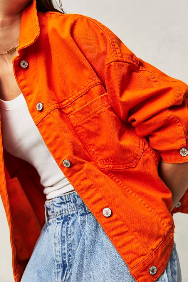 Custom Button Closure Distressed Plus Size Long Sleeve Orange Women Denim Jacket Very well made.
