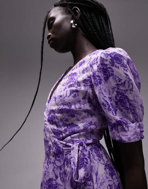 Topshop printed midi wrap occasion dress in purple floral ASOS Very well made.