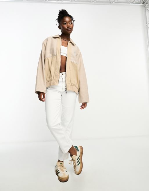 The Couture Club tweed panelled bomber jacket in beige Very well made.