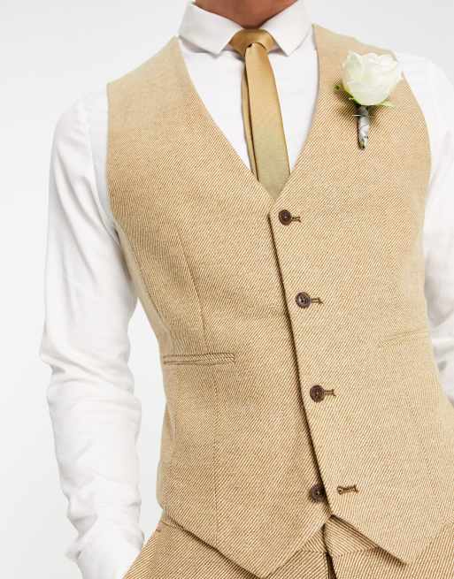 ASOS DESIGN wedding super skinny wool mix twill waistcoat in camel Very well made.